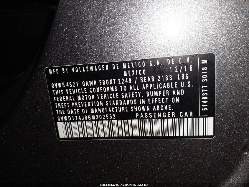 2016 VOLKSWAGEN JETTA 2016 року Бензин, 1.8, Передний привод, vin - 3VWD17AJ9GM302552 из США