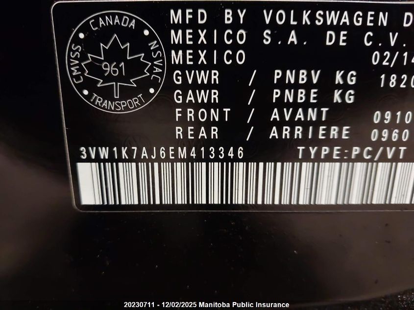 Цвет ЧерныйЦилиндры 4Привод Передний приводVIN 3VW1K7AJ6EM413346Состояние СтационарноПовреждения Передняя леваяДата аукциона 2025-12-10 AutoRIA