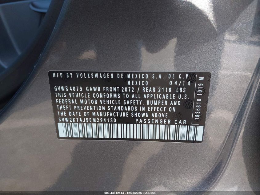 2014 VOLKSWAGEN JETTA 2014 року Бензин, 2.0, Передний привод, vin - 3VW2K7AJ5EM294130 из США