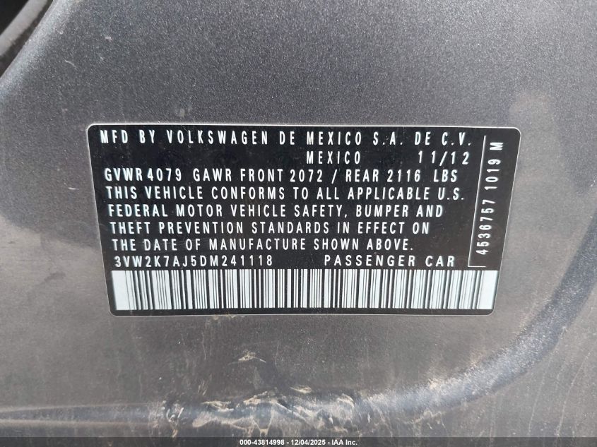 2013 VOLKSWAGEN JETTA 2013 року Бензин, 2.0, Передний привод, vin - 3VW2K7AJ5DM241118 из США