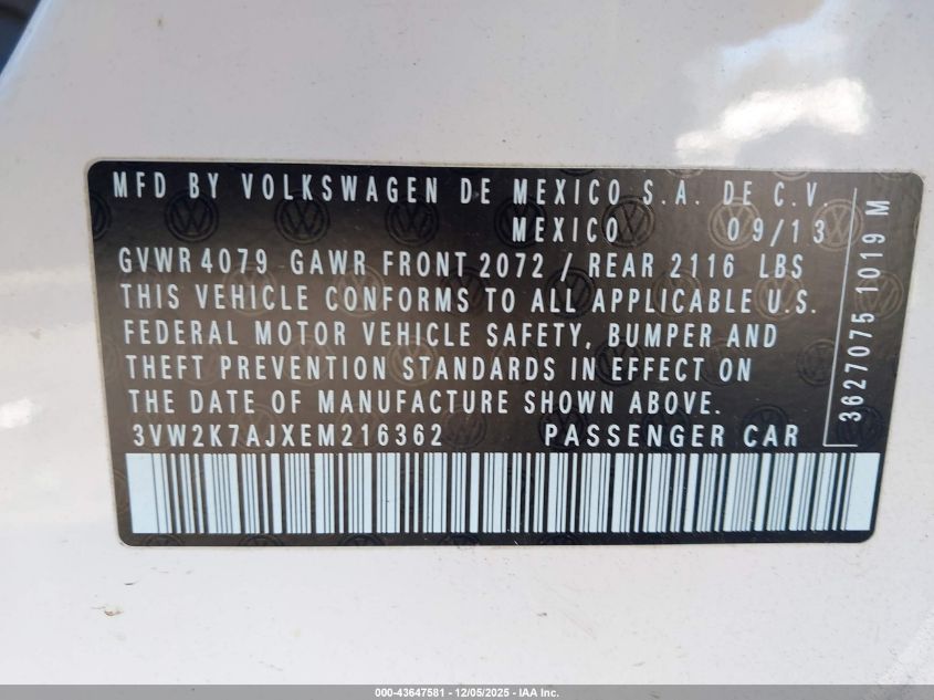 2014 VOLKSWAGEN JETTA 2014 року Бензин, 2.0, Передний привод, vin - 3VW2K7AJXEM216362 из США