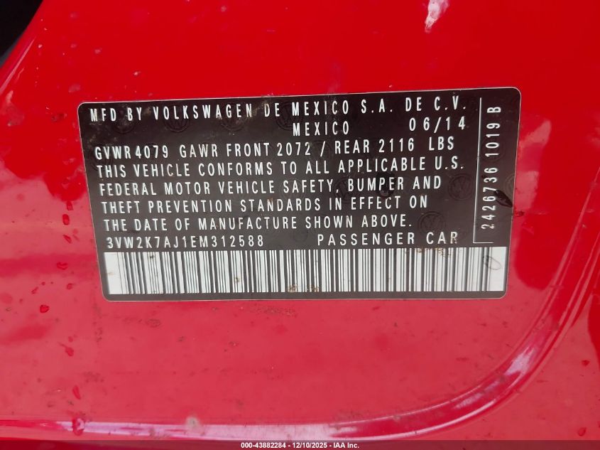 2014 VOLKSWAGEN JETTA 2014 року Бензин, 2.0, Передний привод, vin - 3VW2K7AJ1EM312588 из США