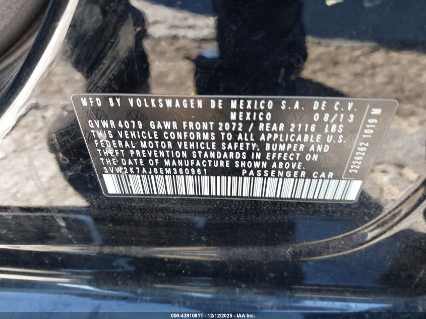 2014 VOLKSWAGEN JETTA 2014 року Бензин, 2.0, Передний привод, vin - 3VW2K7AJ6EM360961 из США
