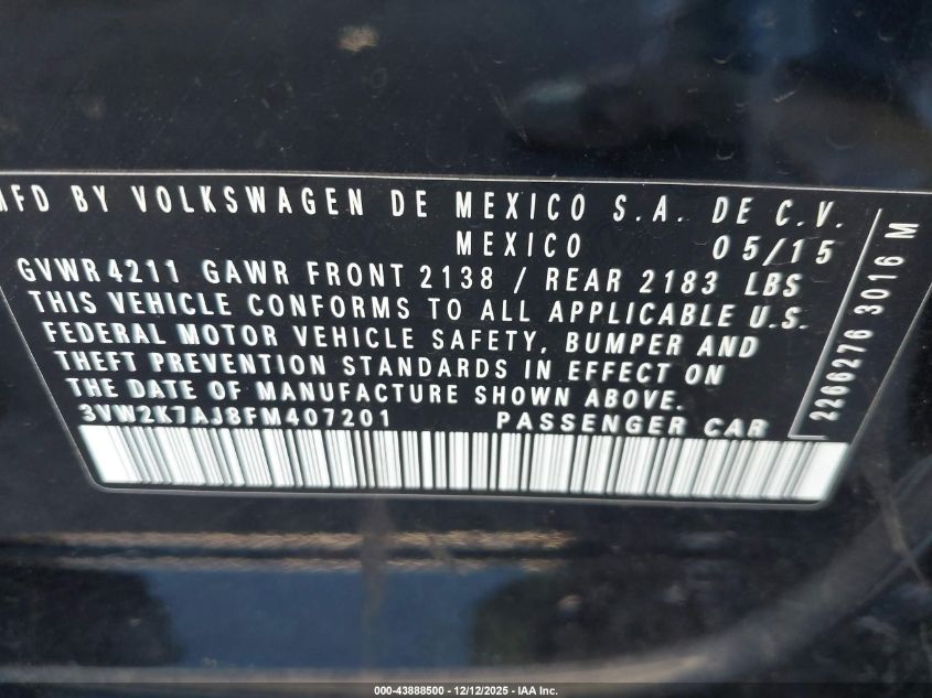 2015 VOLKSWAGEN JETTA 2015 року Бензин, 2.0, Передний привод, vin - 3VW2K7AJ8FM407201 из США