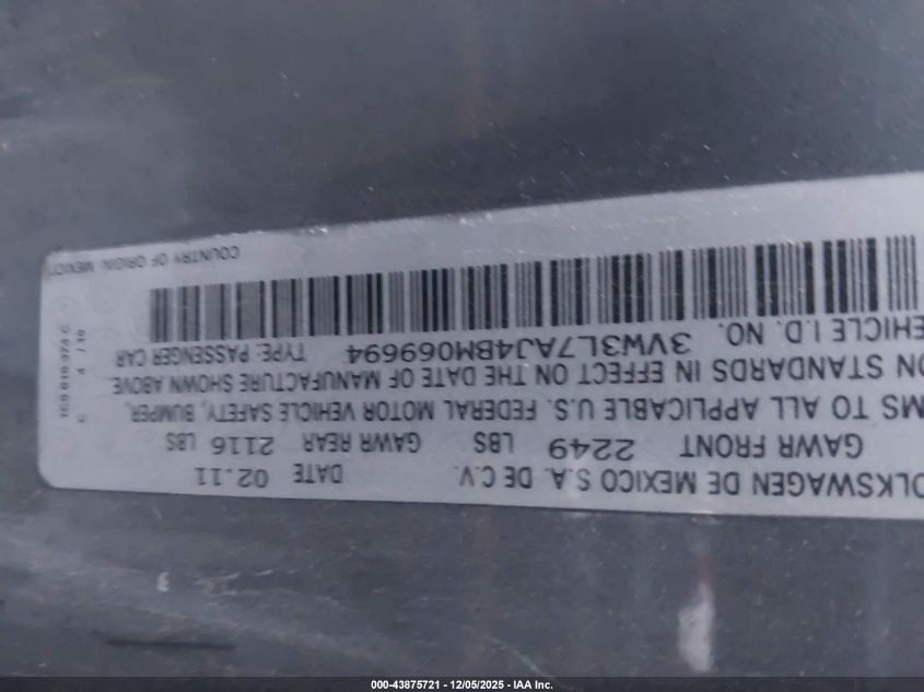 2011 VOLKSWAGEN JETTA 2011 року Дизель, 2.0, Передний привод, vin - 3VW3L7AJ4BM069694 из США