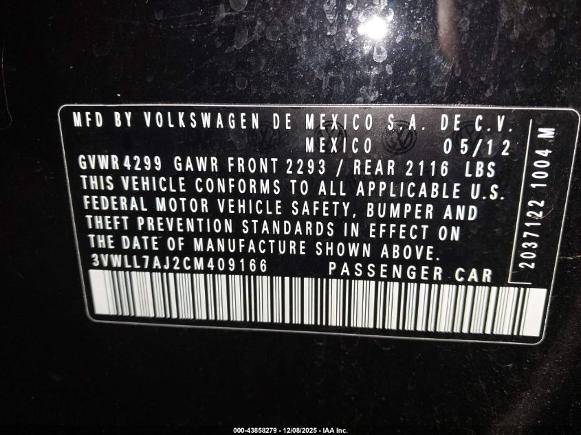 2012 VOLKSWAGEN JETTA 2012 року Дизель, 2.0, Передний привод, vin - 3VWLL7AJ2CM409166 из США