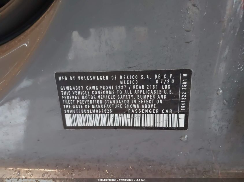 2020 VOLKSWAGEN JETTA 2020 року Бензин, 2.0, Передний привод, vin - 3VW6T7BU9LM067625 из США