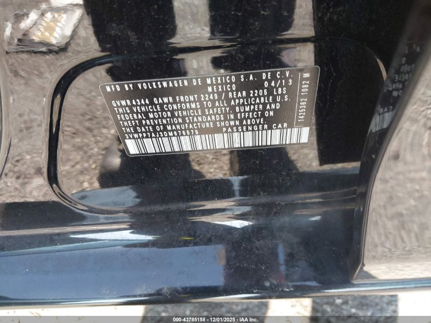 2013 VOLKSWAGEN JETTA 2013 року Бензин, 2.5, Передний привод, vin - 3VWPP7AJ3DM676579 из США