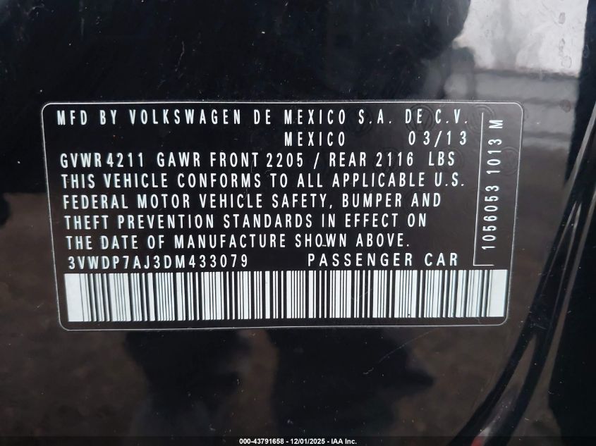 2013 VOLKSWAGEN JETTA 2013 року Бензин, 2.5, Передний привод, vin - 3VWDP7AJ3DM433079 из США