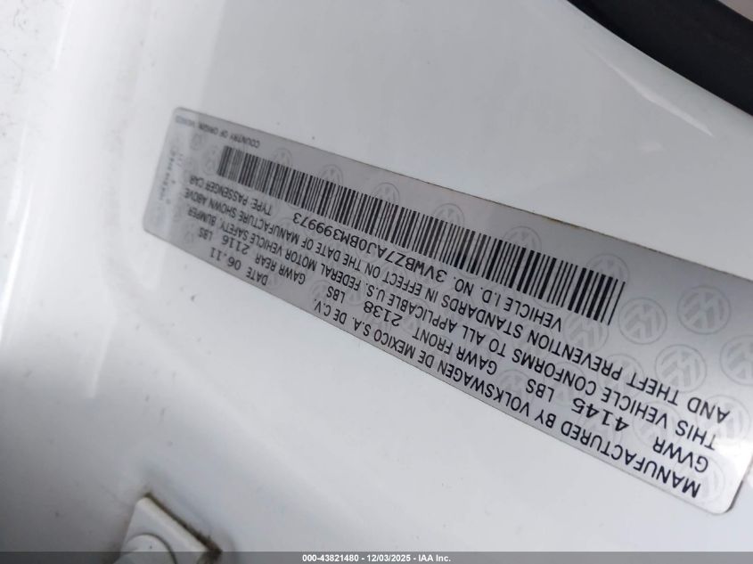 2011 VOLKSWAGEN JETTA 2011 року Бензин, 2.5, Передний привод, vin - 3VWBZ7AJ0BM399973 из США