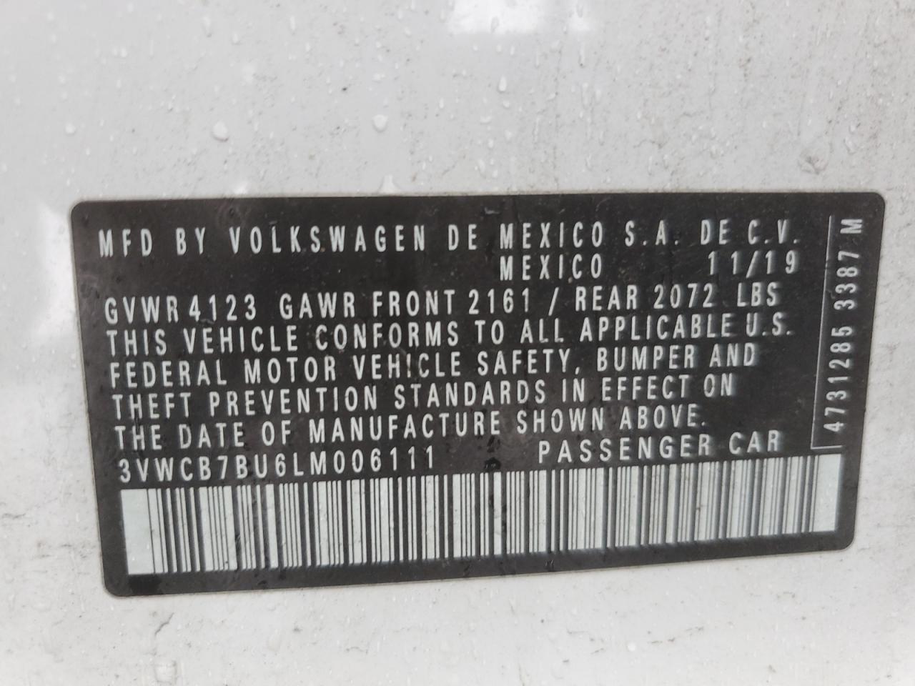 2020 VOLKSWAGEN JETTA 2020 року Бензин, 1.4, , vin - 3VWCB7BU6LM006111 из США