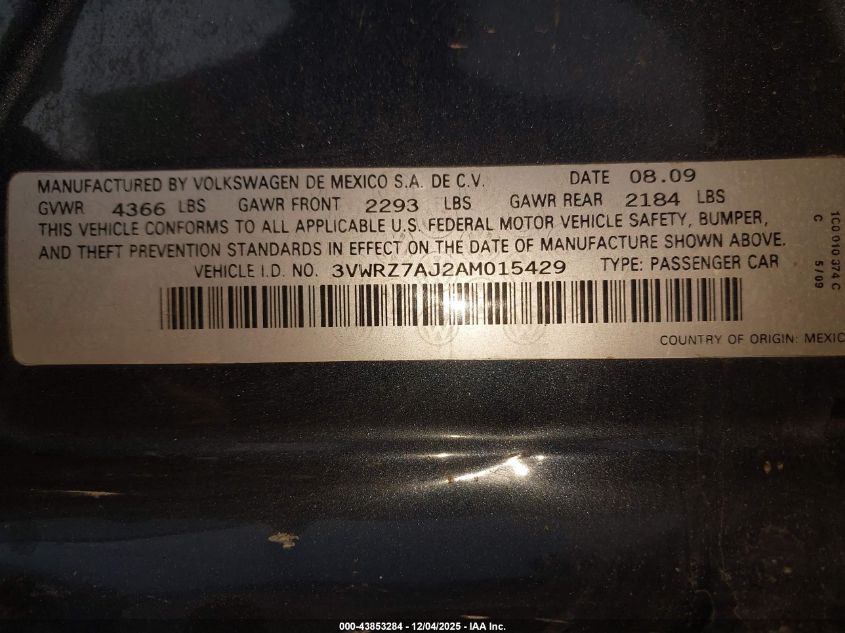 2010 VOLKSWAGEN JETTA 2010 року Бензин, 2.5, Передний привод, vin - 3VWRZ7AJ2AM015429 из США