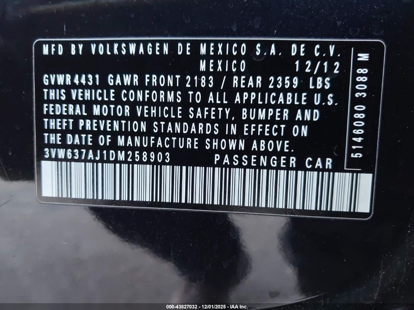 2013 VOLKSWAGEN JETTA 2013 року Гибрид, 1.4, Передний привод, vin - 3VW637AJ1DM258903 из США
