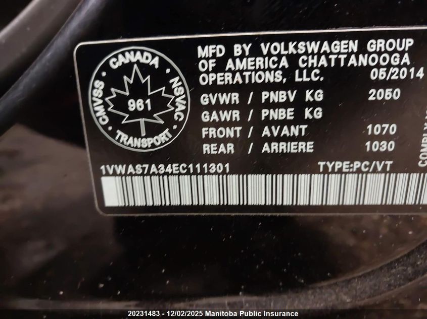 2014 VOLKSWAGEN PASSAT 2014 року Бензин, , Передний привод, vin - 1VWAS7A34EC111301 из США