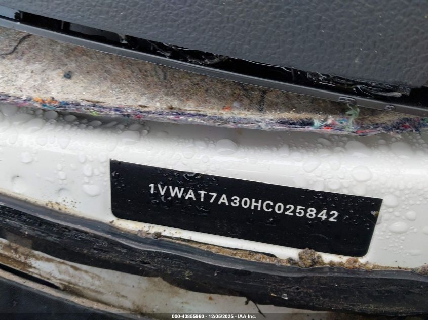 2017 VOLKSWAGEN PASSAT 2017 року Бензин, 1.8, Передний привод, vin - 1VWAT7A30HC025842 из США