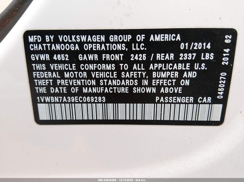 2014 VOLKSWAGEN PASSAT 2014 року Дизель, 2.0, Передний привод, vin - 1VWBN7A39EC069283 из США