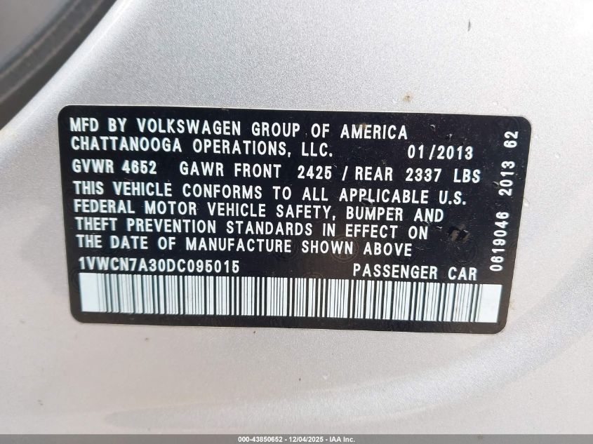 2013 VOLKSWAGEN PASSAT SE