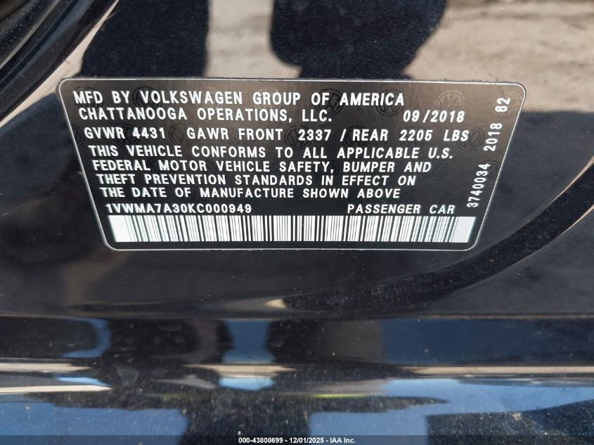 2019 VOLKSWAGEN PASSAT WOLFSBURG