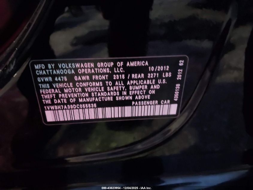 2013 VOLKSWAGEN PASSAT 2013 року Бензин, 2.5, Передний привод, vin - 1VWBH7A39DC055535 из США