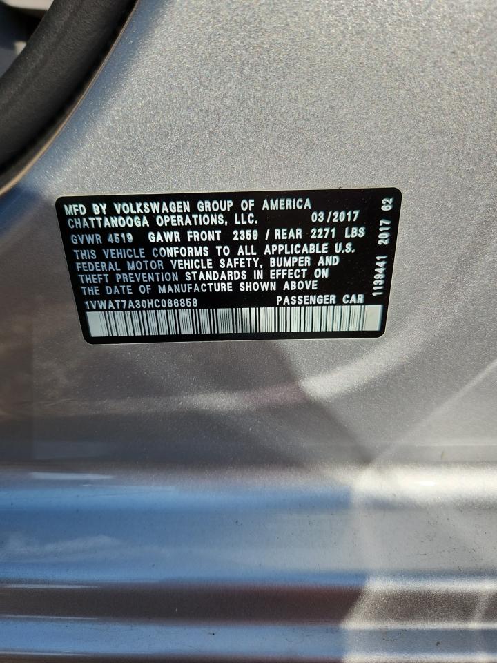2017 VOLKSWAGEN PASSAT 2017 року Бензин, 1.8, , vin - 1VWAT7A30HC066858 из США