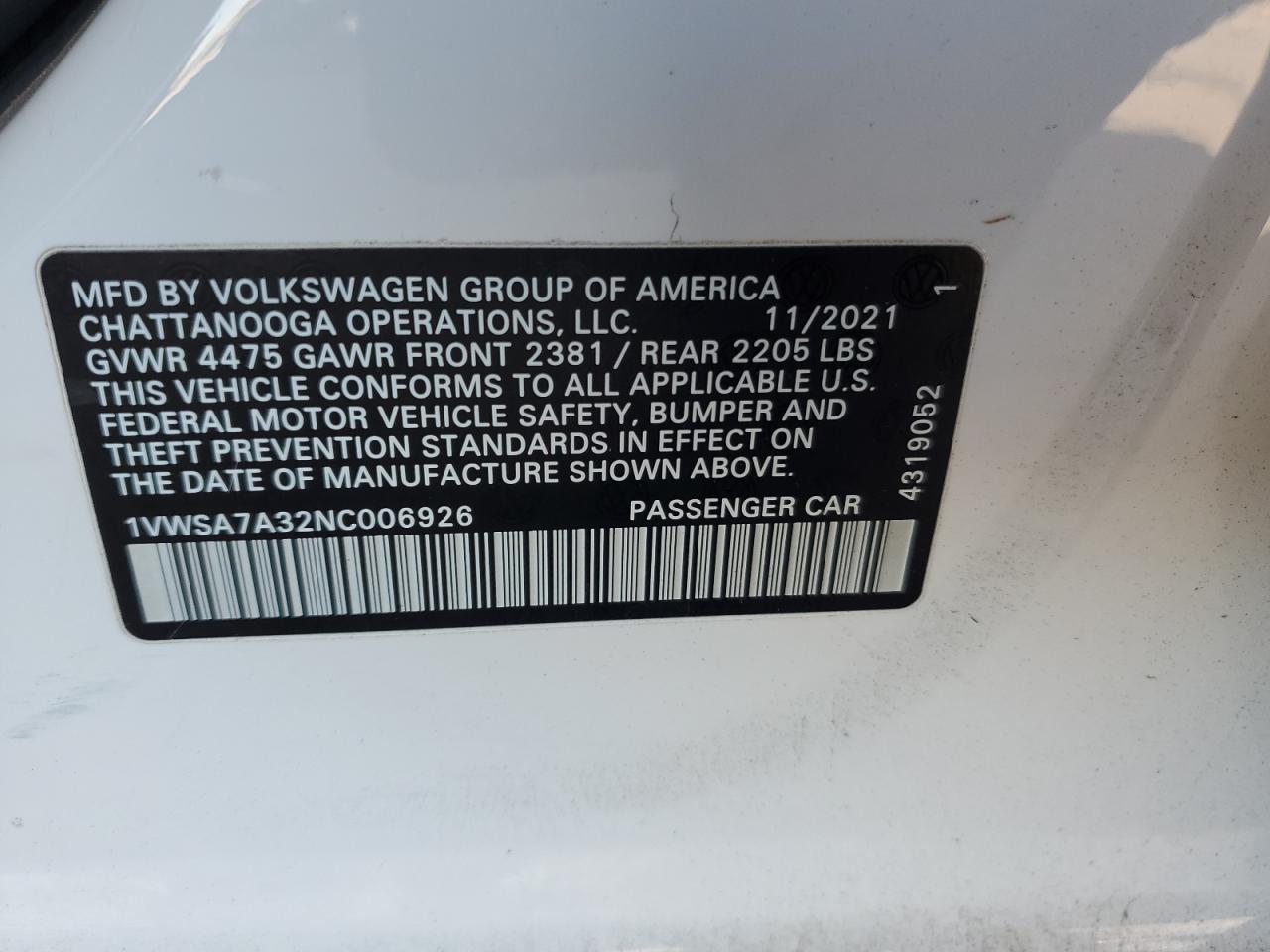 2022 VOLKSWAGEN PASSAT 2022 року Бензин, 2.0, , vin - 1VWSA7A32NC006926 из США