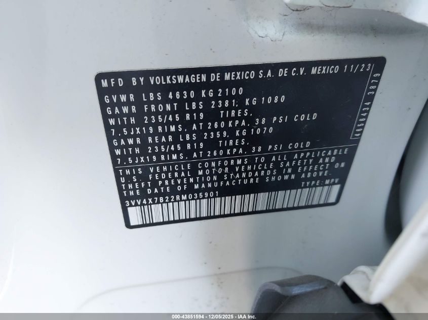 2024 VOLKSWAGEN TAOS 2024 року Бензин, 1.5, Полный привод, vin - 3VV4X7B22RM035901 из США