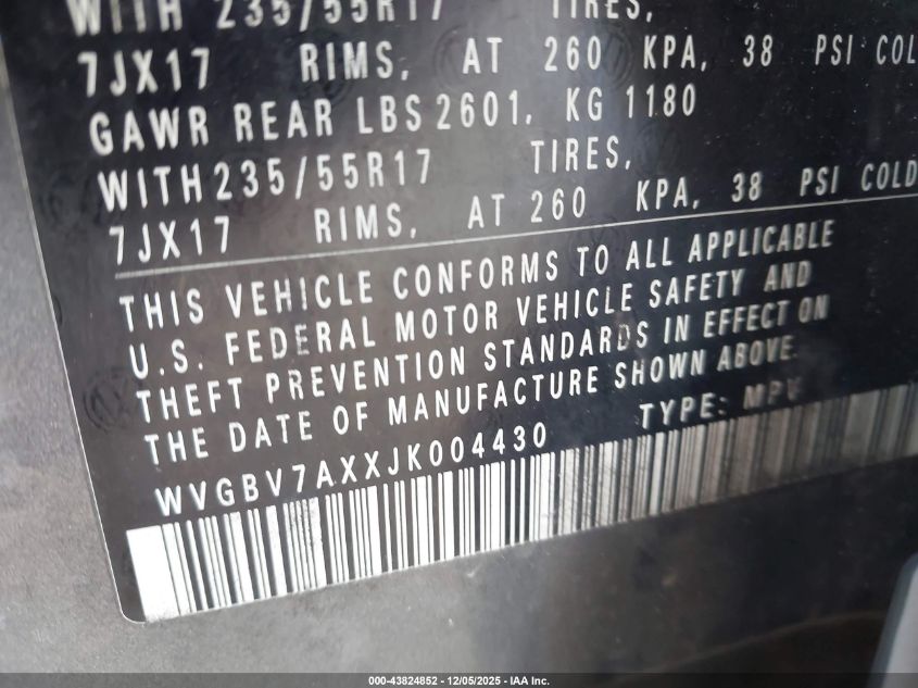 Цвет СерыйЦилиндры 4Привод Полный приводVIN WVGBV7AXXJK004430Состояние Заводится и едет (проверено)Повреждения Передняя или задняя AutoRIA