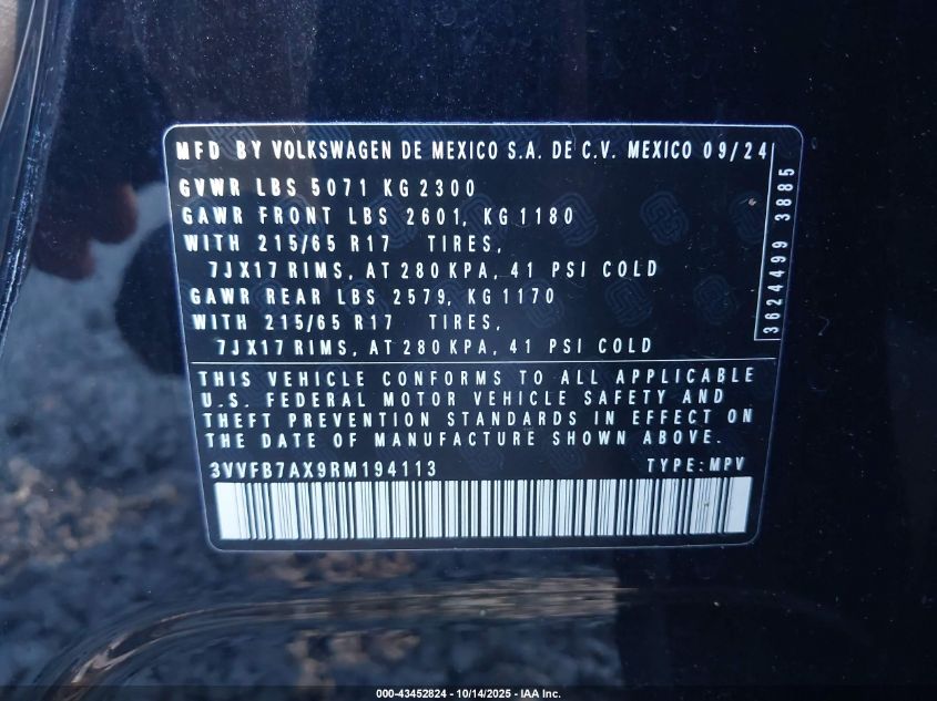 2024 VOLKSWAGEN TIGUAN 2024 року Бензин, 2.0, Полный привод, vin - 3VVFB7AX9RM194113 из США