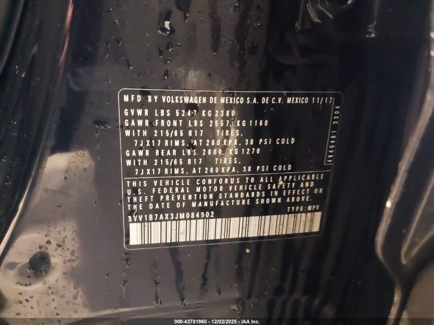 2018 VOLKSWAGEN TIGUAN 2018 року Бензин, 2.0, Передний привод, vin - 3VV1B7AX3JM084902 из США