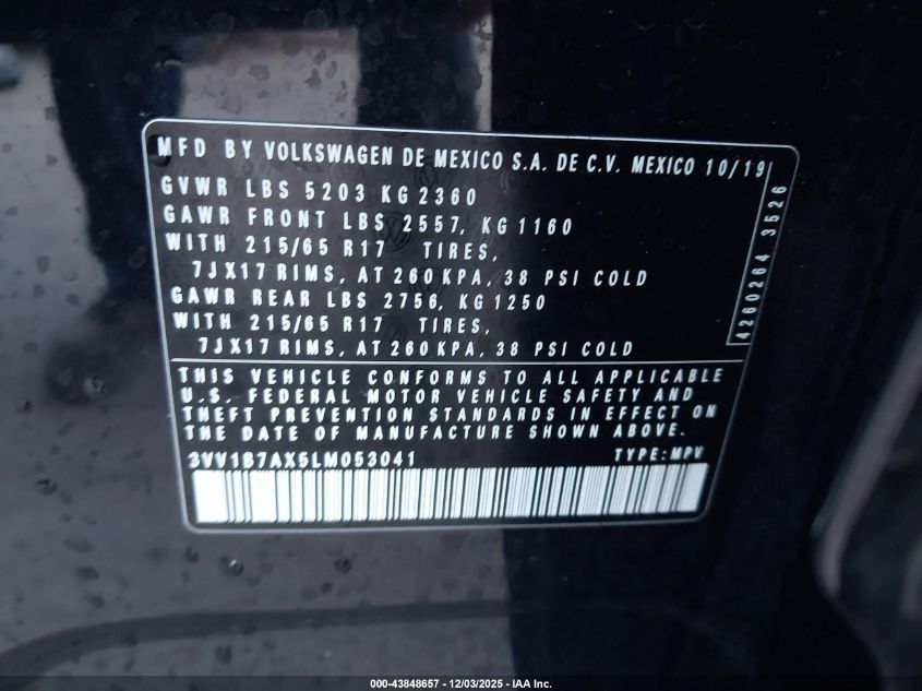 2020 VOLKSWAGEN TIGUAN 2020 року Бензин, 2.0, Передний привод, vin - 3VV1B7AX5LM053041 из США