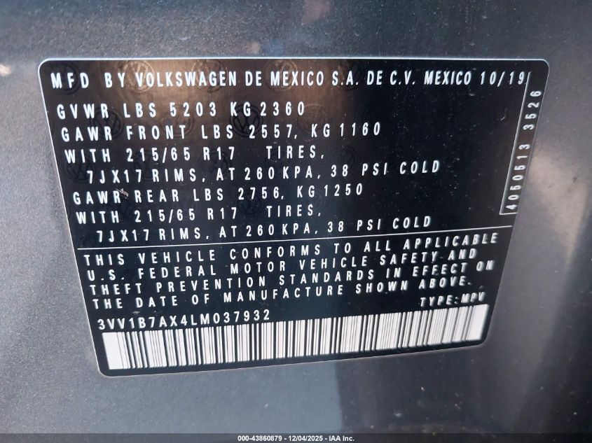 2020 VOLKSWAGEN TIGUAN 2020 року Бензин, 2.0, Передний привод, vin - 3VV1B7AX4LM037932 из США