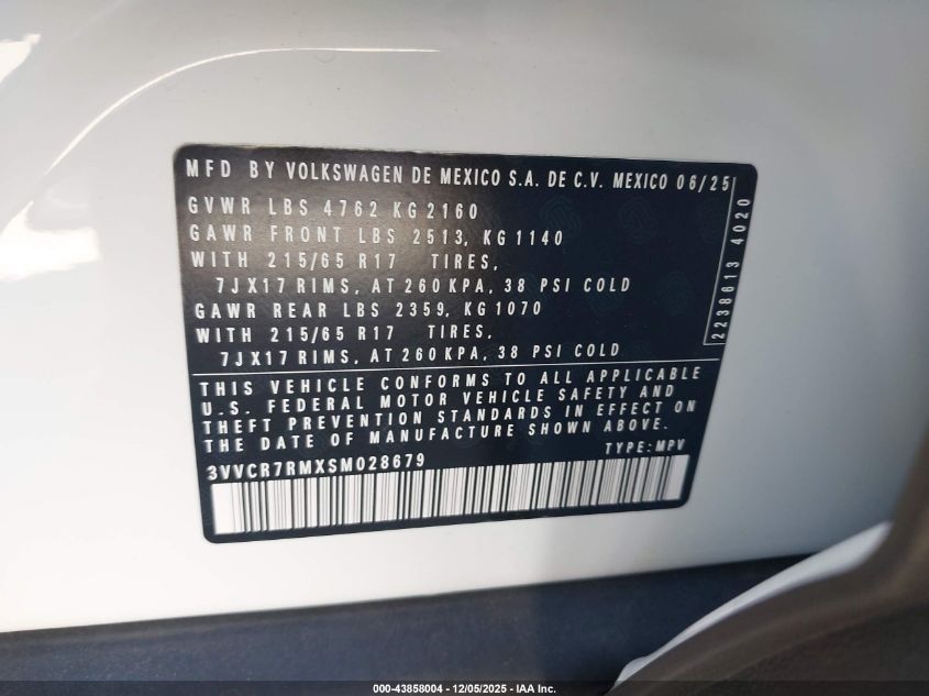 2025 VOLKSWAGEN TIGUAN 2025 року Бензин, 2.0, Передний привод, vin - 3VVCR7RMXSM028679 из США