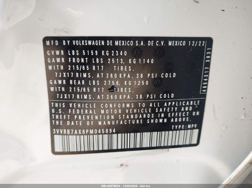2023 VOLKSWAGEN TIGUAN 2023 року Бензин, 2.0, Передний привод, vin - 3VVRB7AX6PM045894 из США