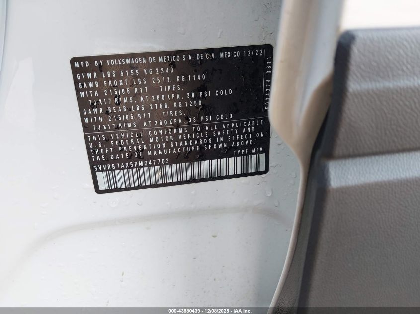 2023 VOLKSWAGEN TIGUAN 2023 року Бензин, 2.0, Передний привод, vin - 3VVRB7AX5PM047703 из США