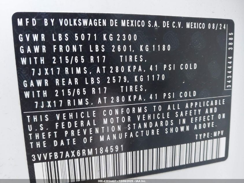 2024 VOLKSWAGEN TIGUAN 2024 року Бензин, 2.0, Полный привод, vin - 3VVFB7AX6RM184591 из США