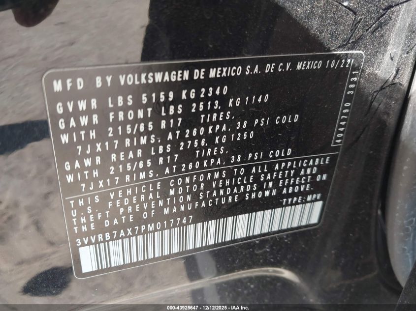 2023 VOLKSWAGEN TIGUAN 2023 року Бензин, 2.0, Передний привод, vin - 3VVRB7AX7PM017747 из США