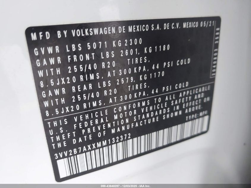 2021 VOLKSWAGEN TIGUAN 2021 року Бензин, 2.0, Полный привод, vin - 3VV2B7AXXMM132372 из США