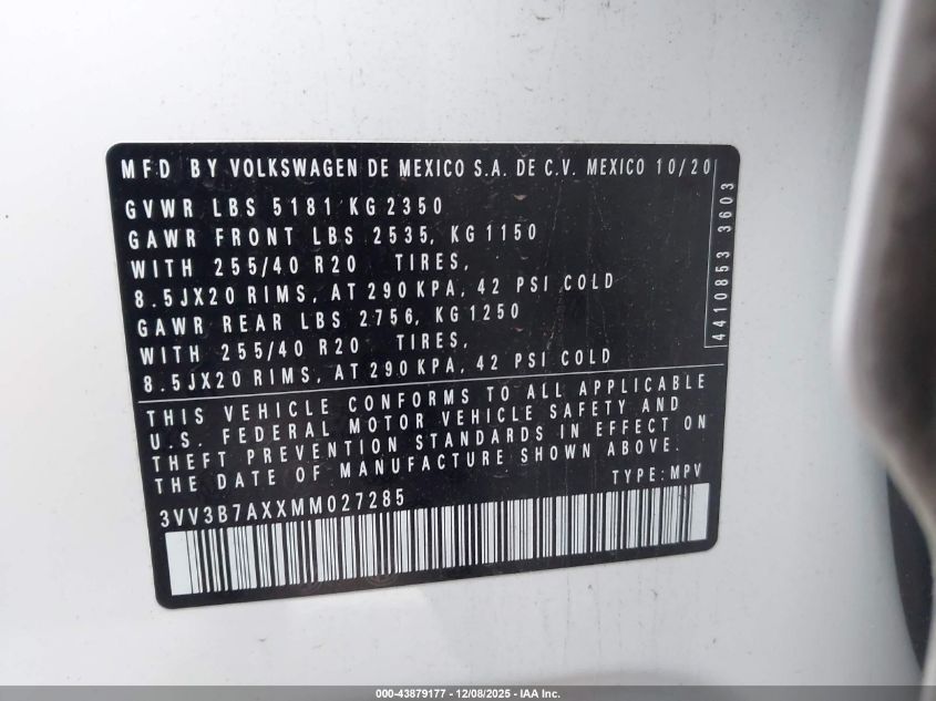 2021 VOLKSWAGEN TIGUAN 2021 року Бензин, 2.0, Передний привод, vin - 3VV3B7AXXMM027285 из США