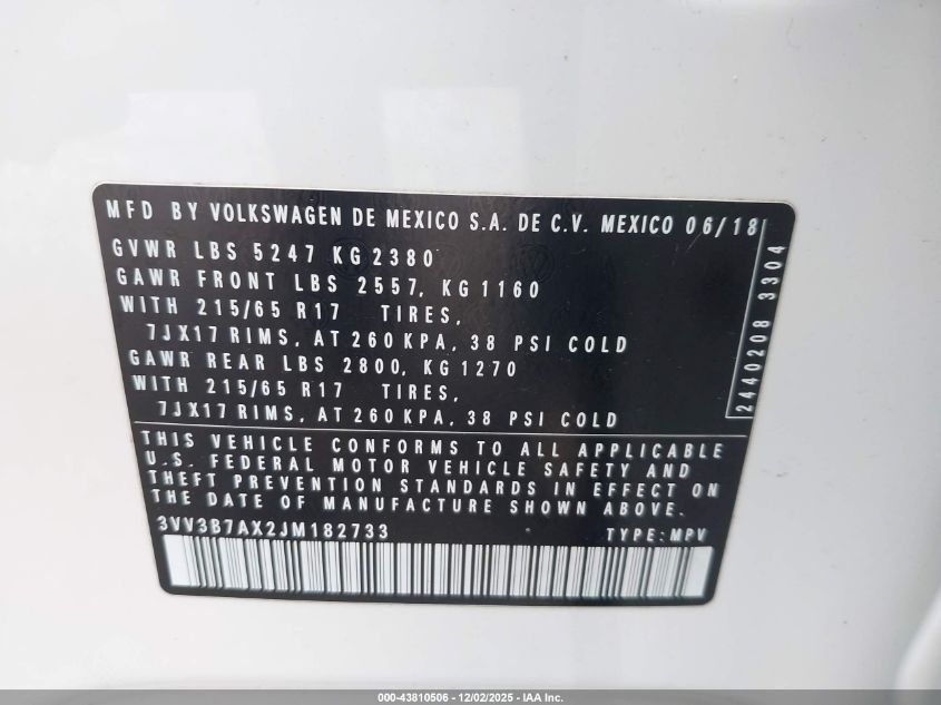 2018 VOLKSWAGEN TIGUAN SE
