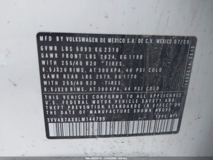 2020 VOLKSWAGEN TIGUAN 2020 року Бензин, 2.0, Полный привод, vin - 3VV4B7AX8LM144799 из США