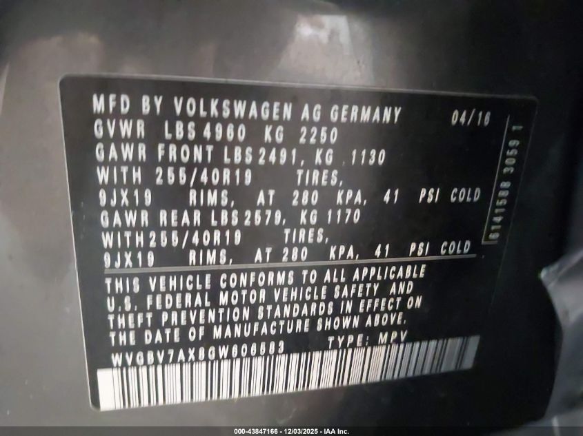 2016 VOLKSWAGEN TIGUAN 2016 року Бензин, 2.0, Полный привод, vin - WVGBV7AX8GW606583 из США