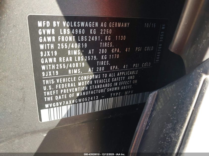 2016 VOLKSWAGEN TIGUAN 2016 року Бензин, 2.0, Полный привод, vin - WVGBV7AX6GW052413 из США