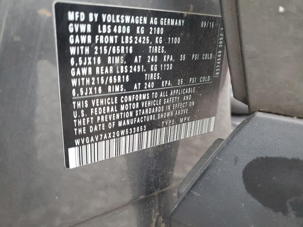 2016 VOLKSWAGEN TIGUAN 2016 року Бензин, 2.0, , vin - WVGAV7AX2GW533853 из США