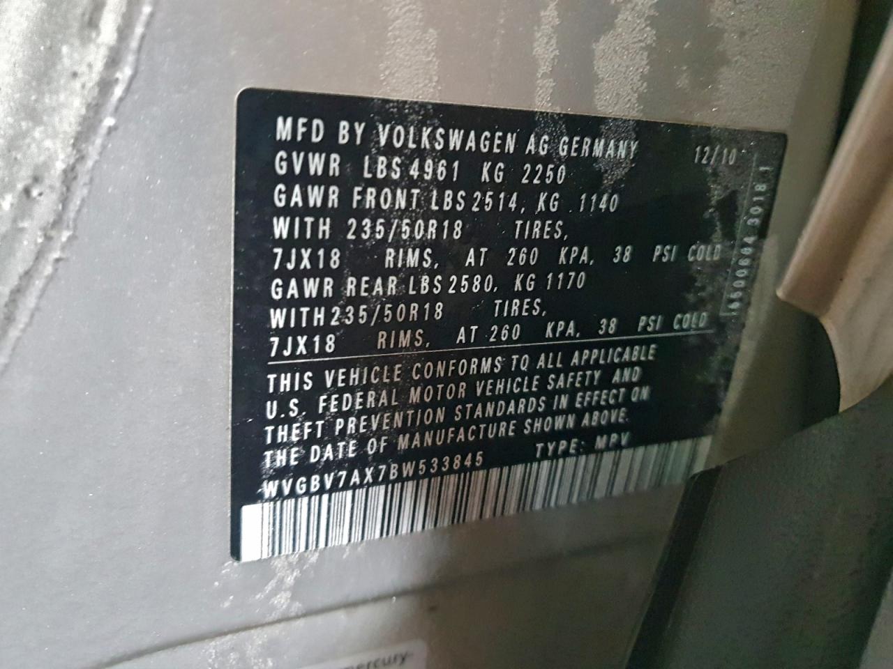2011 VOLKSWAGEN TIGUAN 2011 року Бензин, 2.0, Полный привод, vin - WVGBV7AX7BW533845 из США