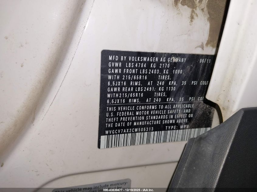 2012 VOLKSWAGEN TIGUAN 2012 року Бензин, 2.0, Передний привод, vin - WVGCV7AX2CW505313 из США