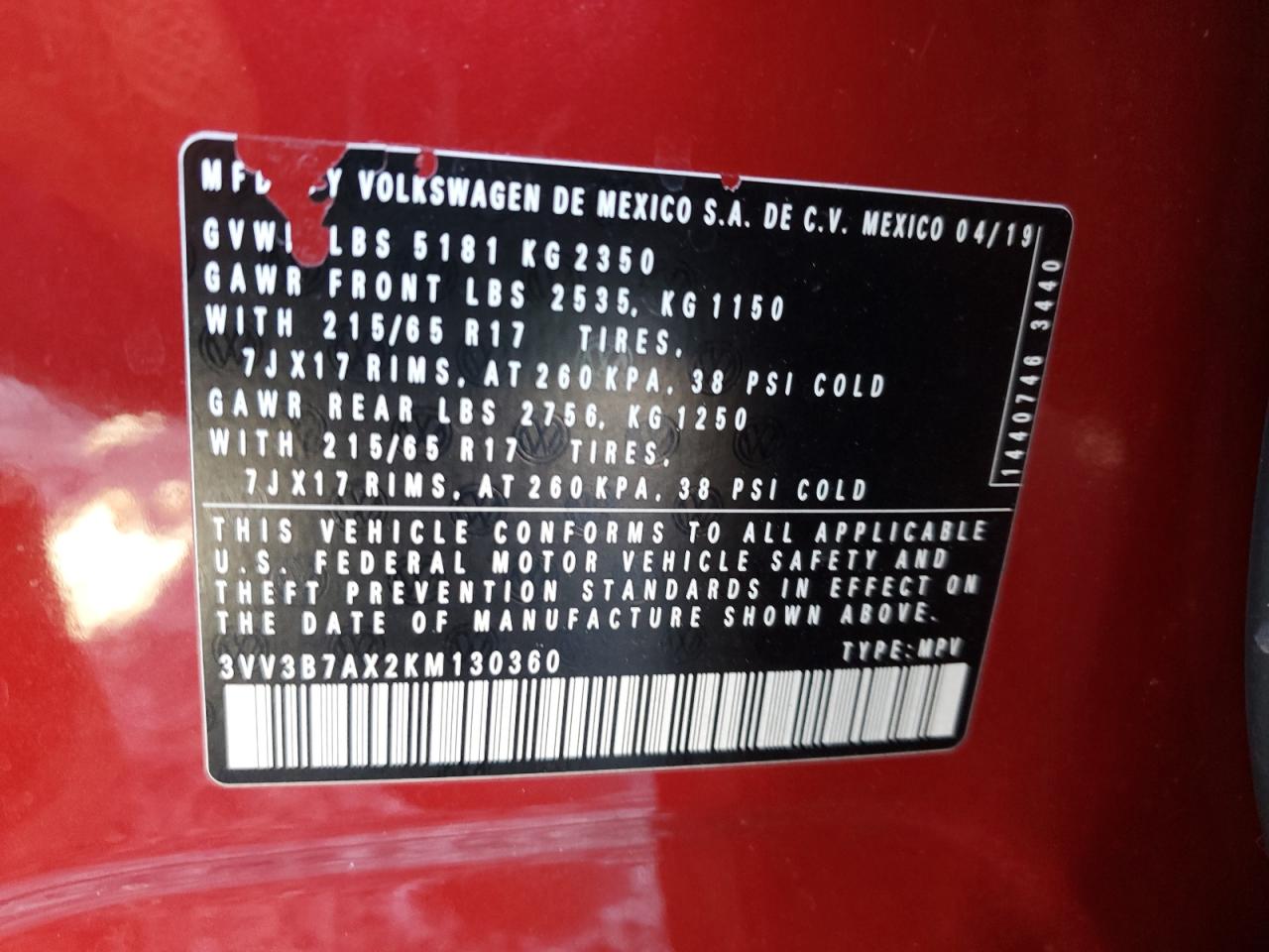 2019 VOLKSWAGEN TIGUAN 2019 року Бензин, 2.0, , vin - 3VV3B7AX2KM130360 из США