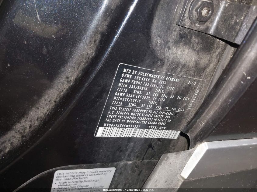 2012 VOLKSWAGEN TIGUAN S