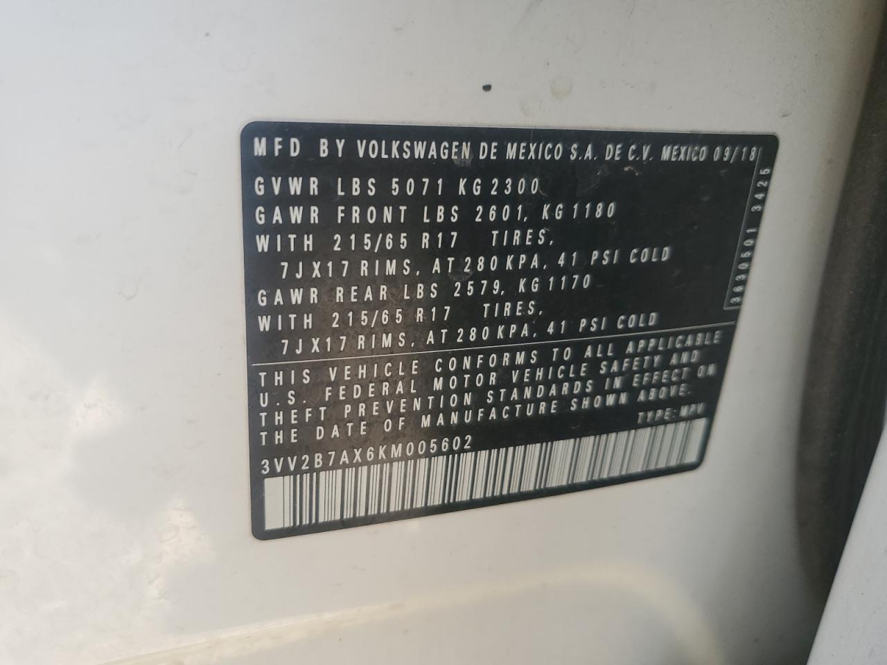 2019 VOLKSWAGEN TIGUAN 2019 року Бензин, 2.0, Полный привод, vin - 3VV2B7AX6KM005602 из США
