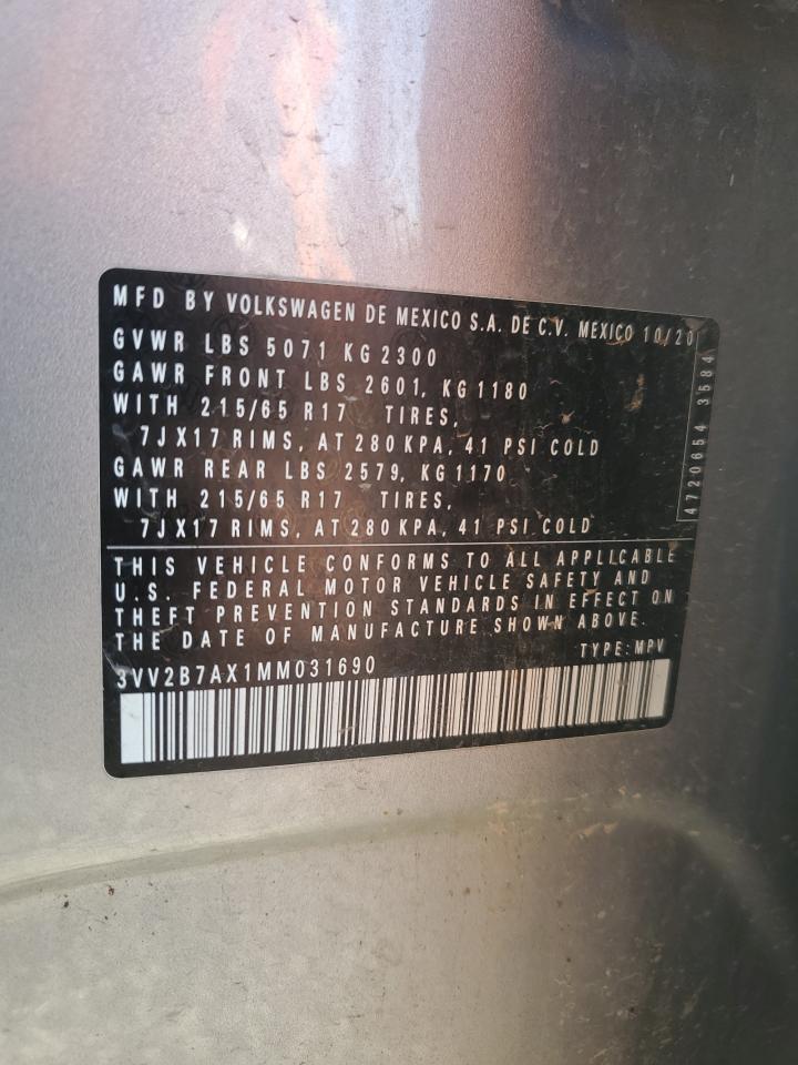 2021 VOLKSWAGEN TIGUAN 2021 року Бензин, 2.0, Полный привод, vin - 3VV2B7AX1MM031690 из США