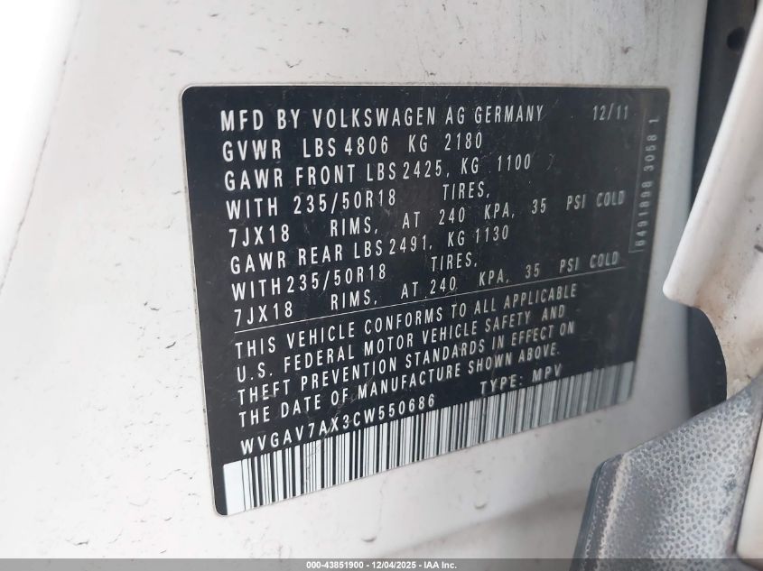 2012 VOLKSWAGEN TIGUAN S